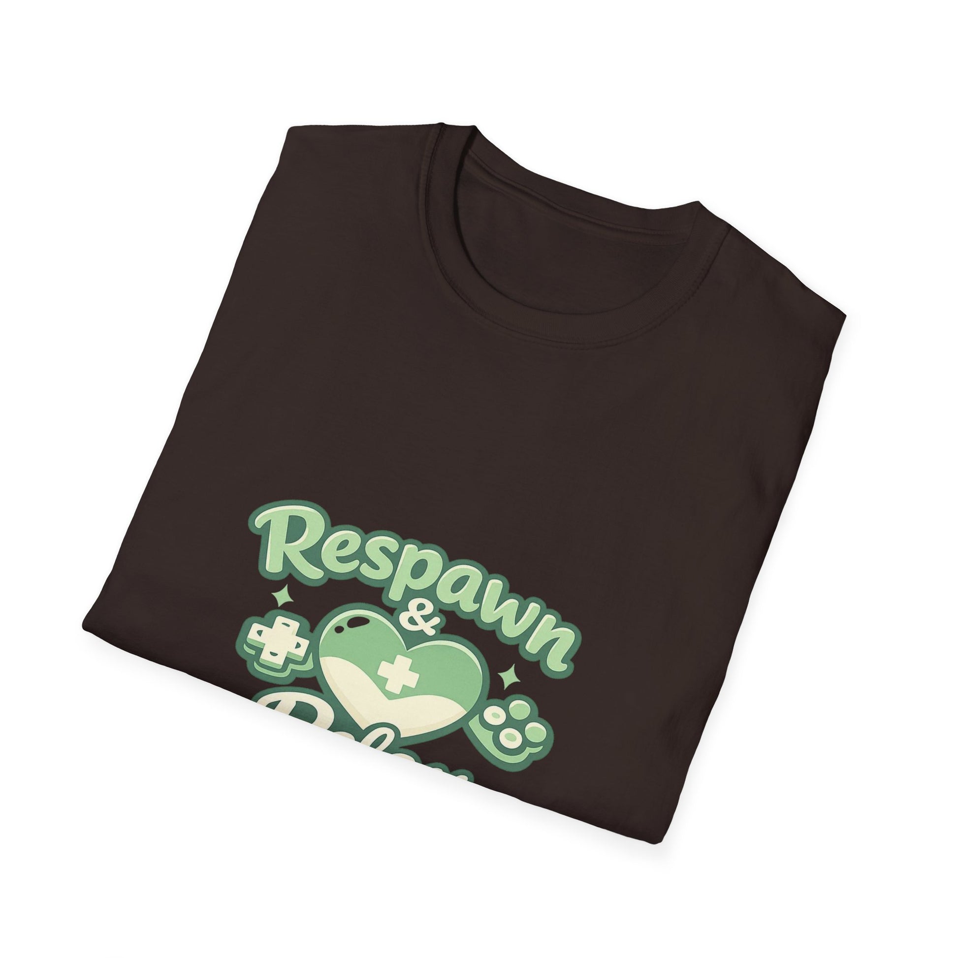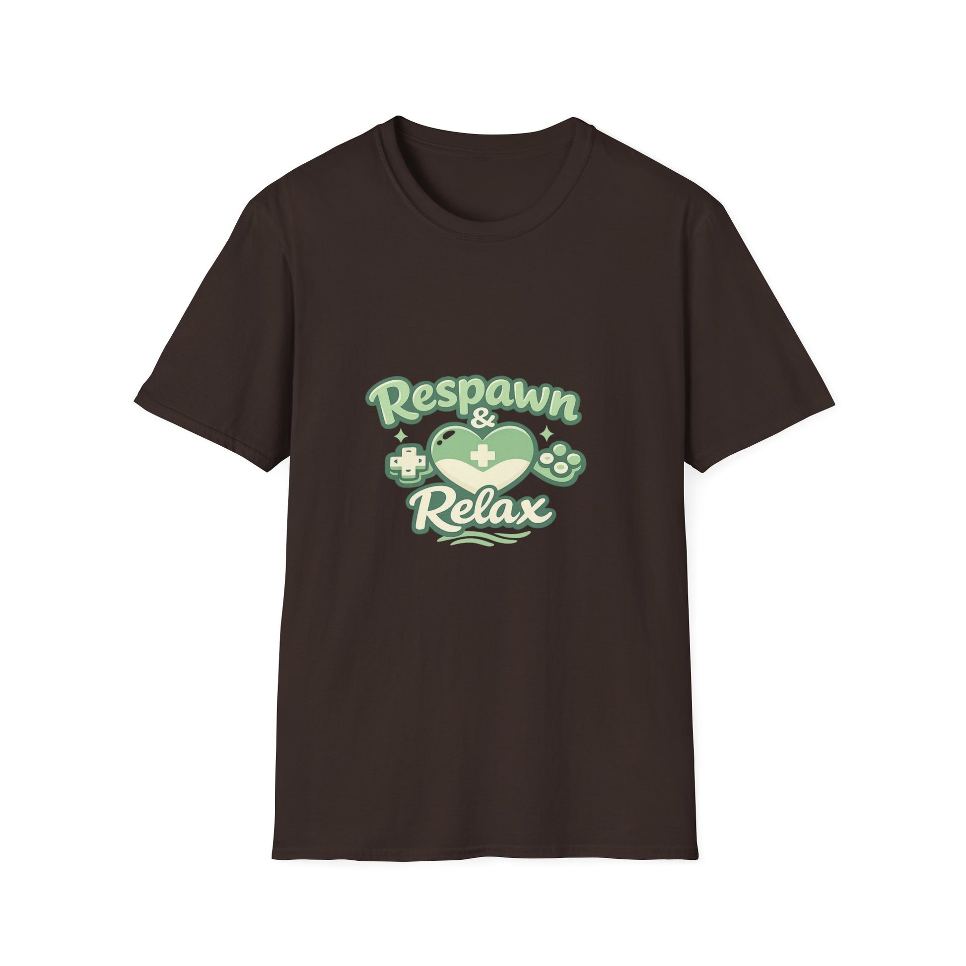 Soft, breathable, and printed with a chill gaming vibe — this lightweight tee carries a calming green “Respawn & Relax” design that feels like a deep-breath pause between matches. The crew neck and classic fit sit comfortably whether you’re streaming, grinding through a co-op night, or heading out for a casual meetup. The smooth ring‑spun cotton surface keeps the print crisp and the feel gentle on skin, while the tear‑away label and shoulder tape make it last through long sessions and frequent washes. Wear it when you want your look to say ‘ready for respawn’ but relaxed about the rest.