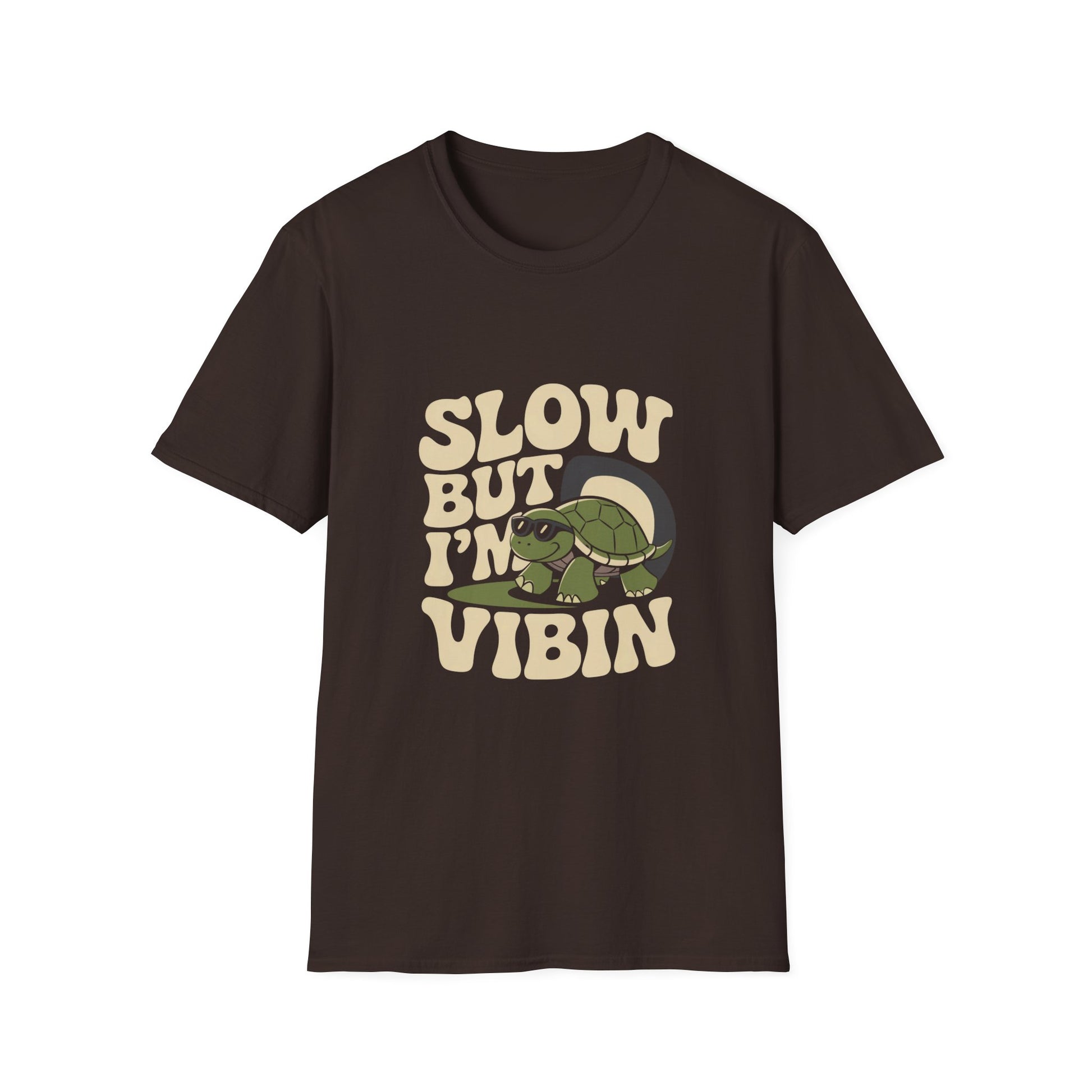 Slow But I'm Vibin Turtle T-Shirt — (Unisex) Cute Retro Vibe Graphic Tee